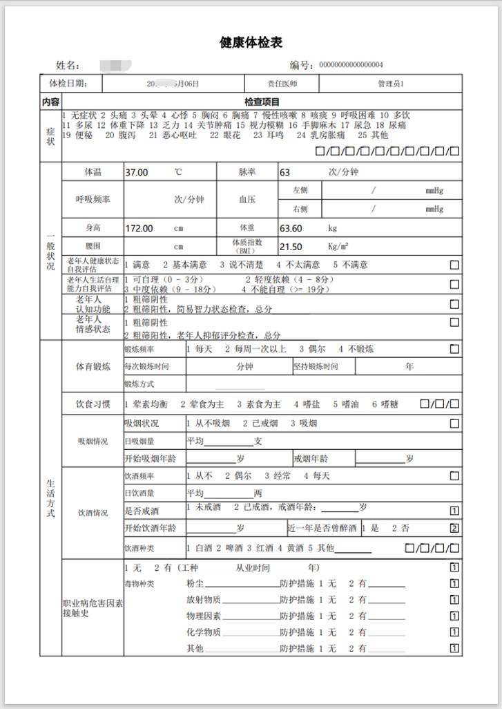 支持智能總檢評價、批量打印健康體檢報告,支持職業病/學生體檢,支持微信查看電子健康體檢報告